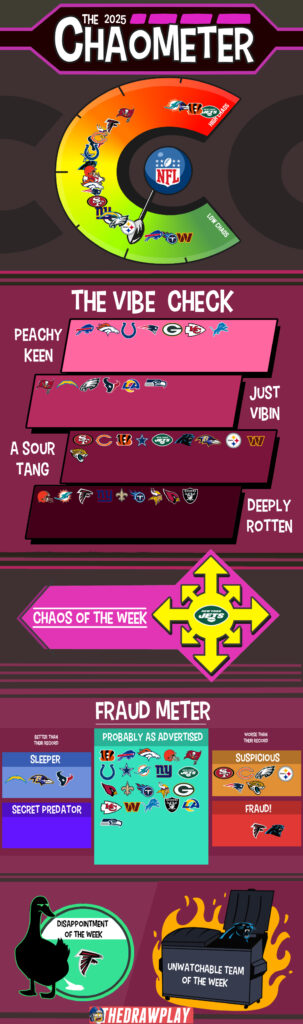 THE WEEK IN CHAOS –Alright. We’re back on the board. After a couple of weak weeks we at least had some silliness to enjoy, even if the outcomes weren’t that crazy. Vikings/Chargers went about as expected, but it might have[…]↓ Read the rest of this entry…
