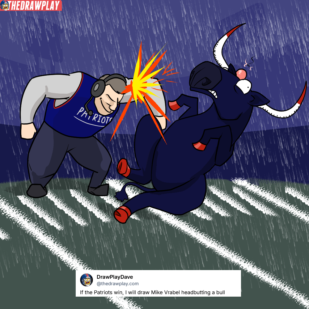 If the Patriots win, I will draw Drake Maye slapping that Kayshon Boutte